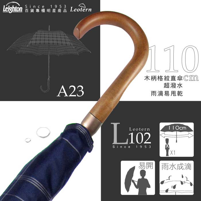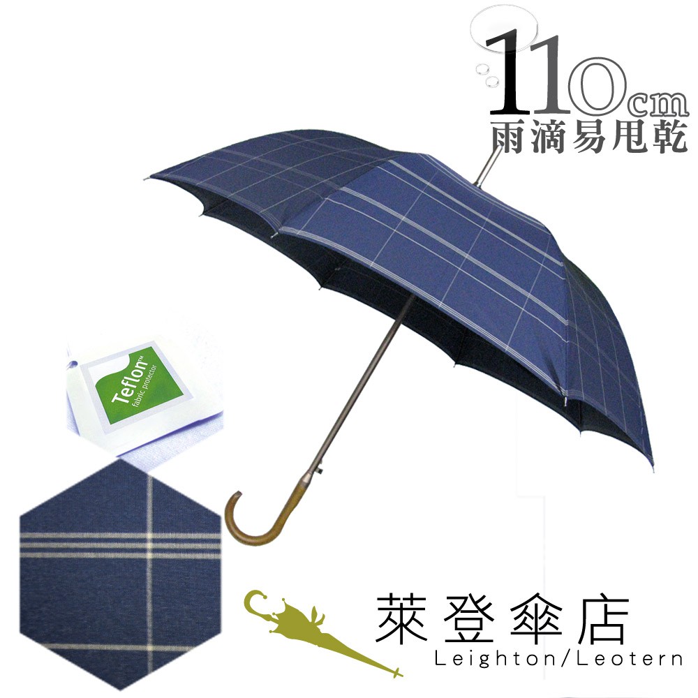 【萊登傘】雨傘 格紋先染色紗 110cm加大自動直傘 易甩乾 防風抗斷 藍金格紋