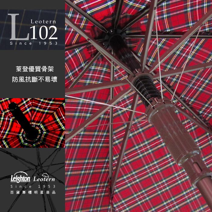 【萊登傘】雨傘 格紋先染色紗 110cm加大自動直傘 易甩乾 防風抗斷 黑粉格紋