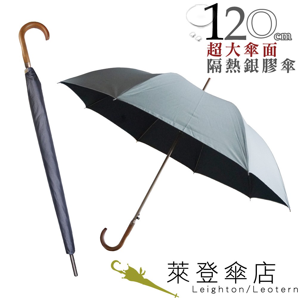 【萊登傘】雨傘 印花銀膠 120cm超大直傘 可遮三人 抗UV防曬 防風抗斷 銀在外