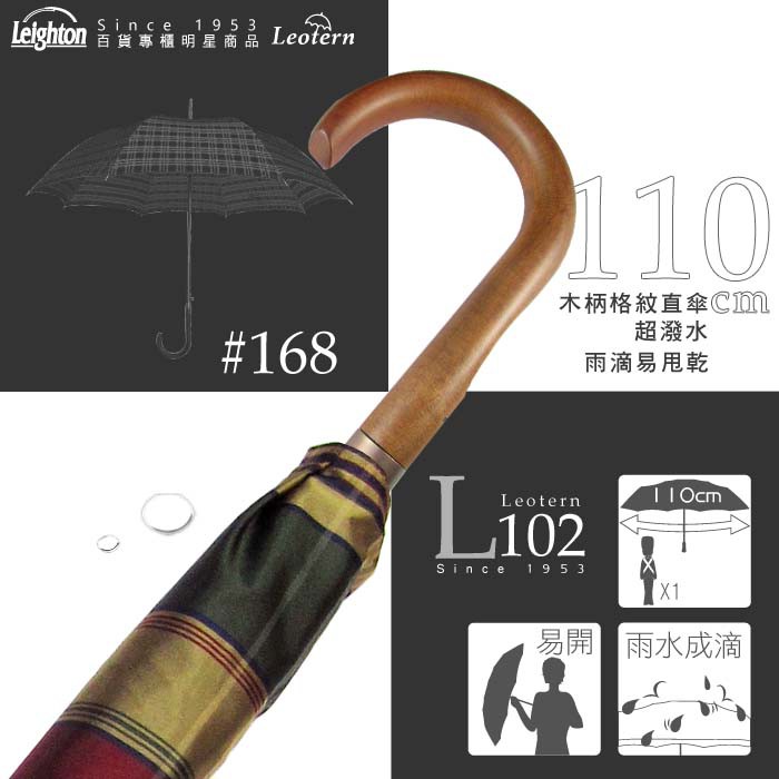 【萊登傘】雨傘 格紋先染色紗 110cm加大自動直傘 易甩乾 防風抗斷 金紅格紋