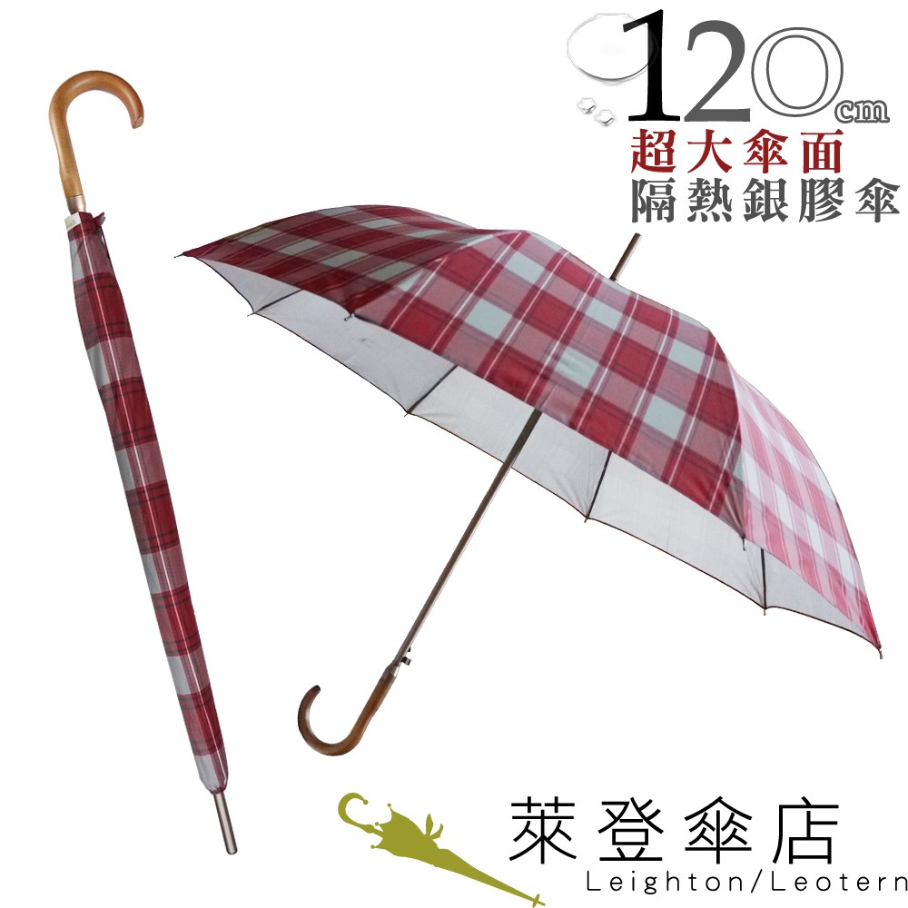 【萊登傘】雨傘 印花銀膠 120cm超大直傘 可遮三人 抗UV防曬 防風抗斷 紅灰格紋