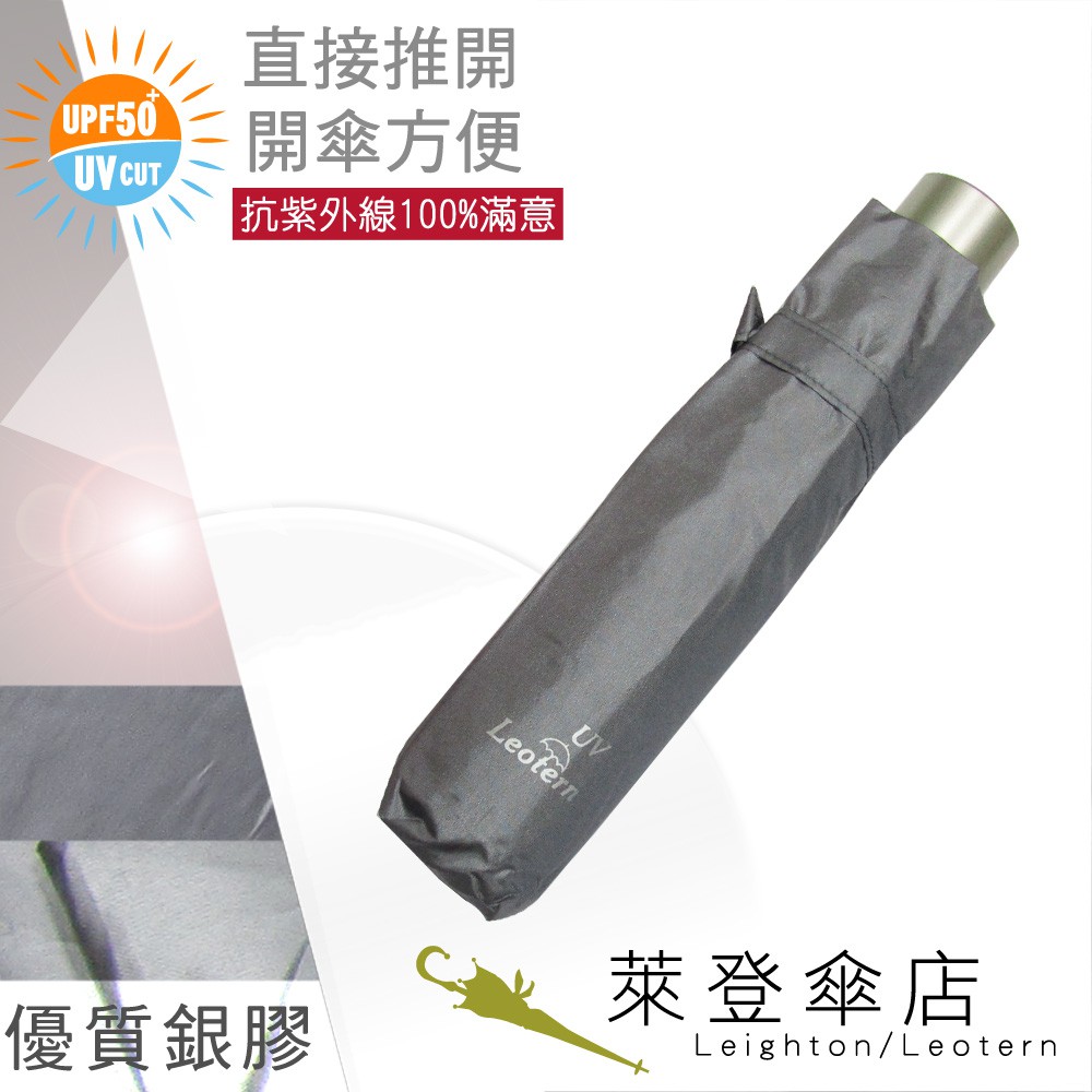 【萊登傘】雨傘 UPF50+ 易開 95cm中傘面 陽傘 抗UV 防曬 銀膠 銀灰