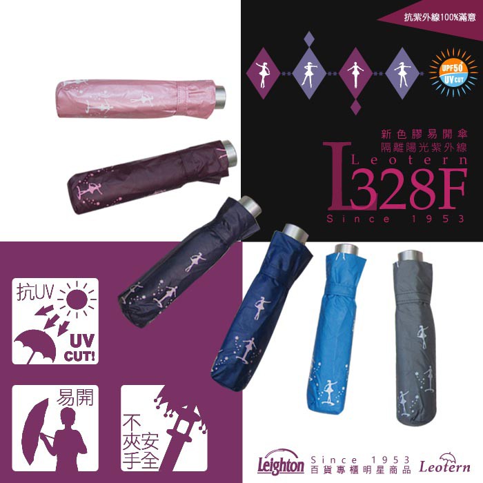 【萊登傘】雨傘 UPF50+ 易開 中傘面 陽傘 抗UV 防曬 色膠 舞孃紅紫