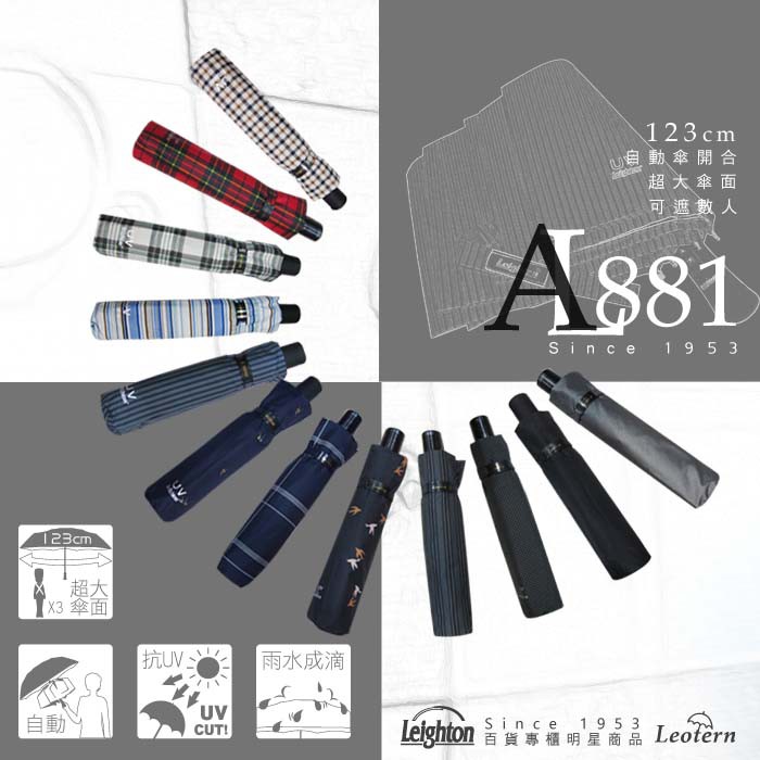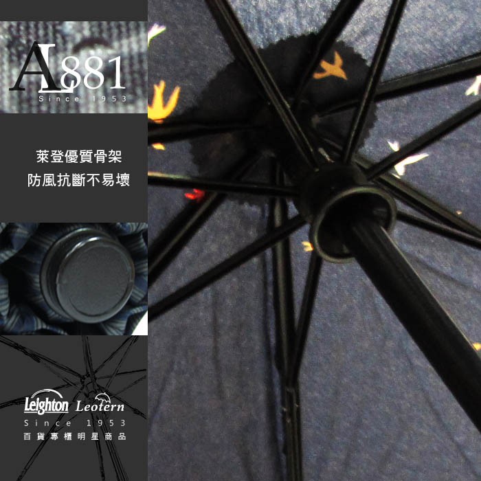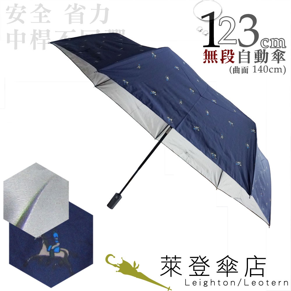 【萊登傘】雨傘 印花銀膠 不回彈 123cm超大無段自動傘 抗UV 防風抗斷 藍色馬球