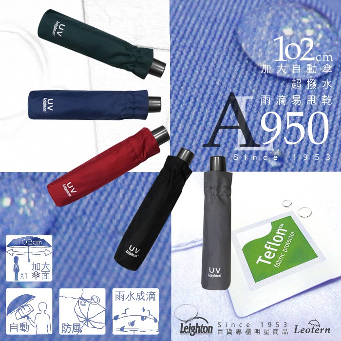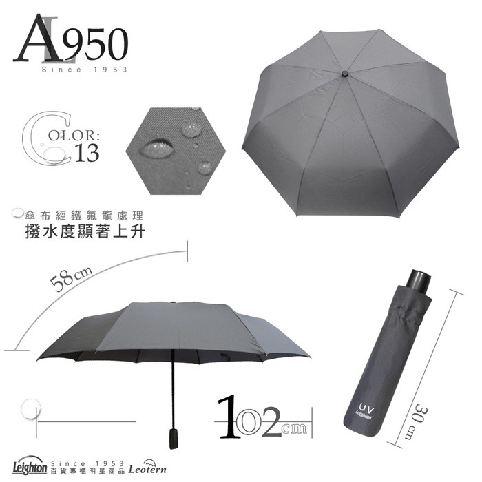 【萊登傘】雨傘 素色鐵氟龍 102cm加大傘面自動傘 易甩乾 防風抗斷 灰 特價