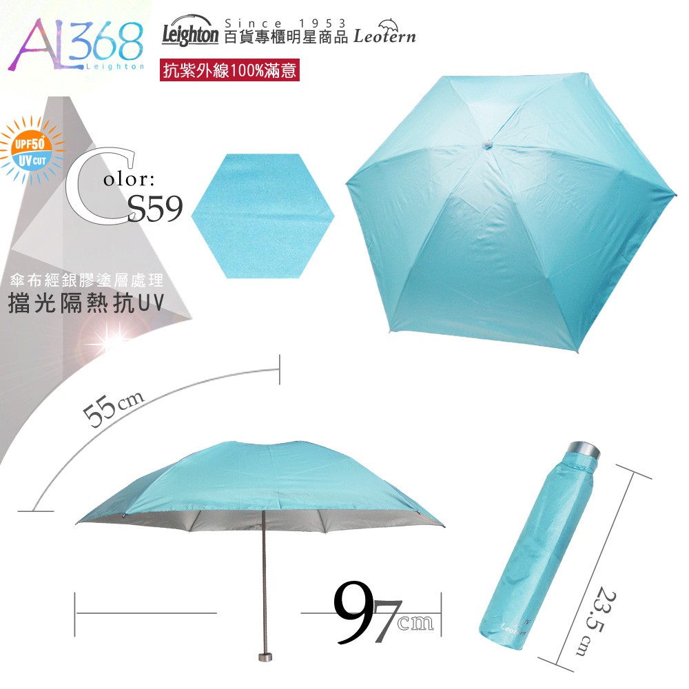 【萊登傘】雨傘 UPF50+ 易開蝴蝶骨 中傘面 陽傘 抗UV 防曬 銀膠 天藍