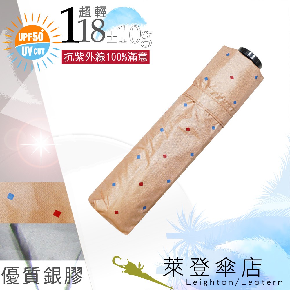 【萊登傘】雨傘 UPF50+ 118克日式輕傘 抗UV 銀膠 防曬 超輕三折傘 碳纖維 菱形點粉橘