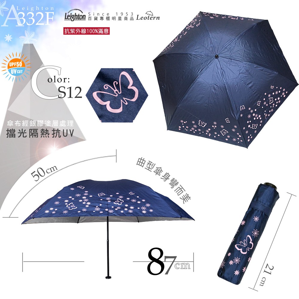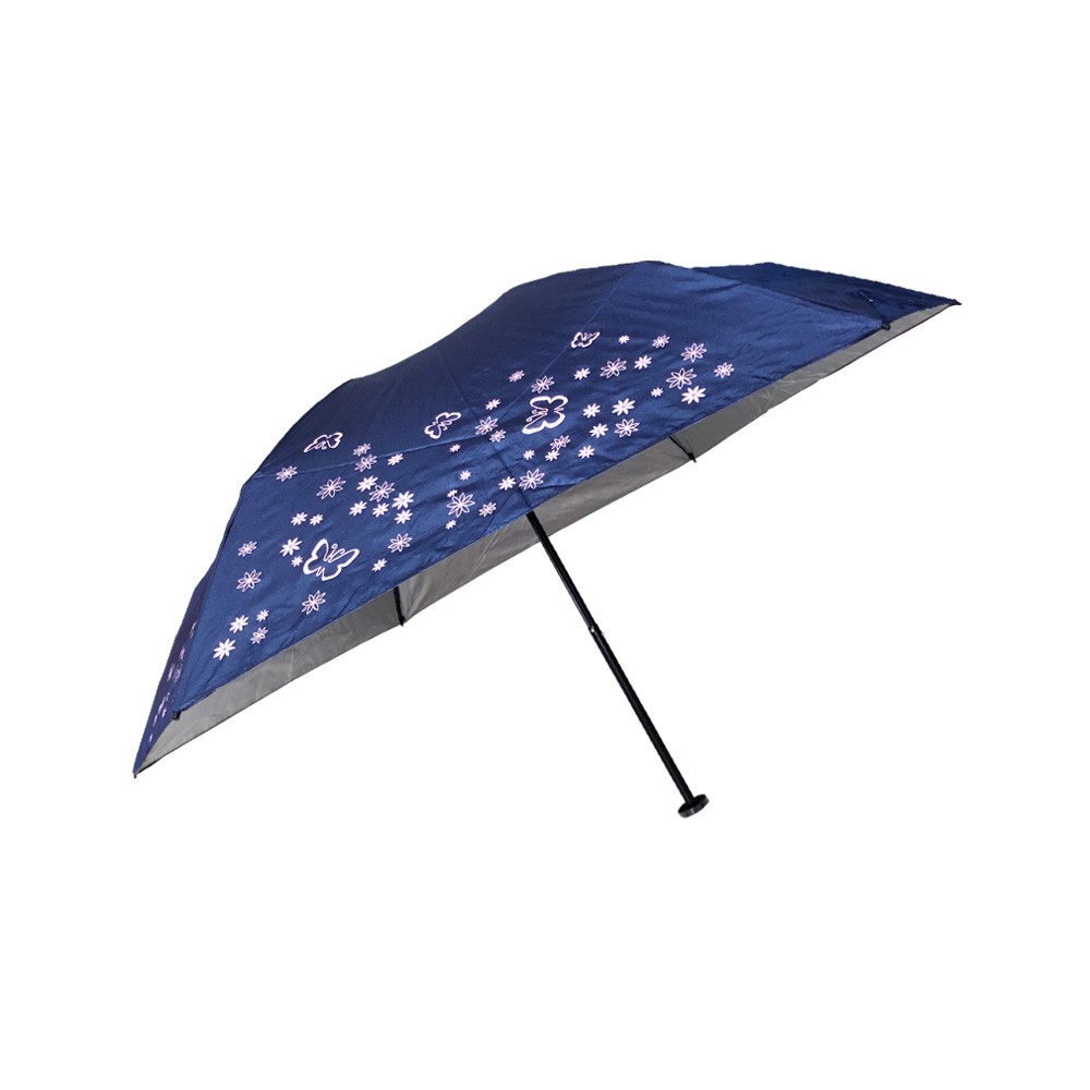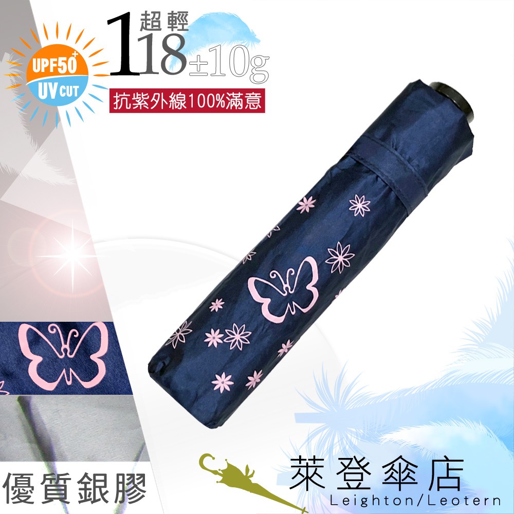 【萊登傘】雨傘 UPF50+ 118克日式輕傘 抗UV 銀膠 防曬 超輕三折傘 碳纖維 蝴蝶深藍