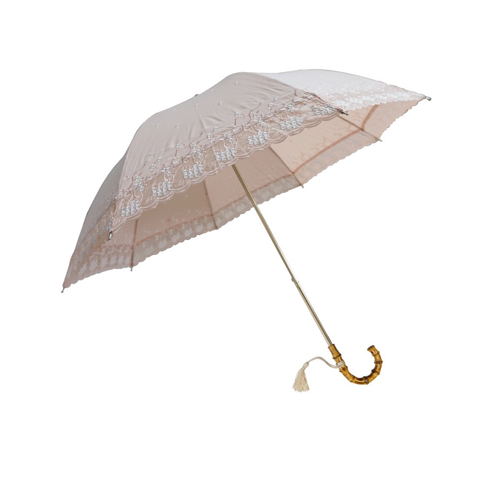 【萊登傘】 刺繡傘 手開直骨傘 竹節把手 流蘇 Leighton 布面小花(粉橘)特價