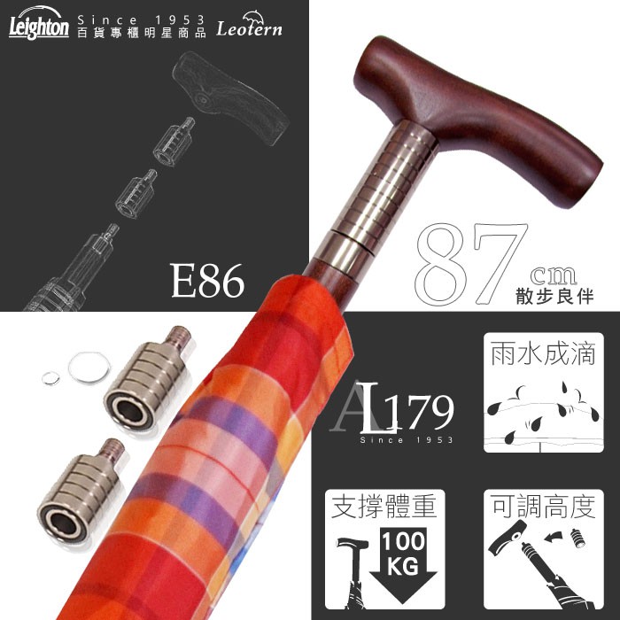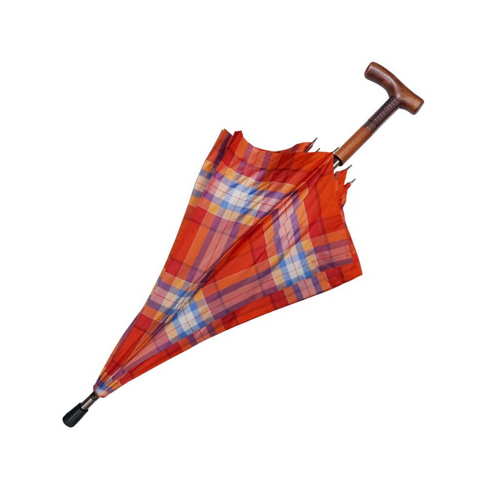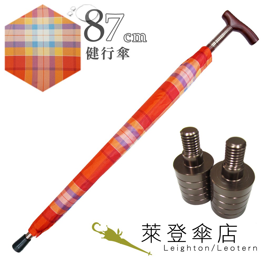 【萊登傘】雨傘 調高健行傘 一般高度 輔助 格紋布 長輩禮物 橘白格紋