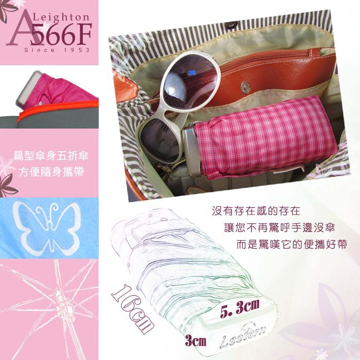 【萊登傘】雨傘 UPF50+ 超短五折傘 陽傘 抗UV 防曬 銀膠 蝴蝶粉橘