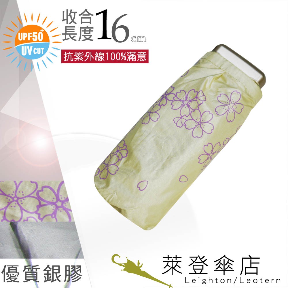 【萊登傘】雨傘 UPF50+ 超短五折傘 陽傘 抗UV 防曬 銀膠 櫻花蘋果綠