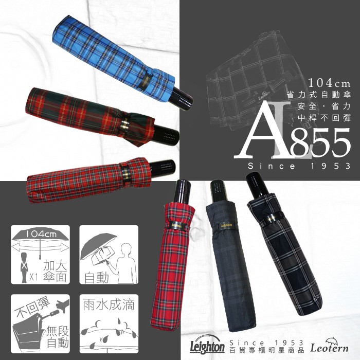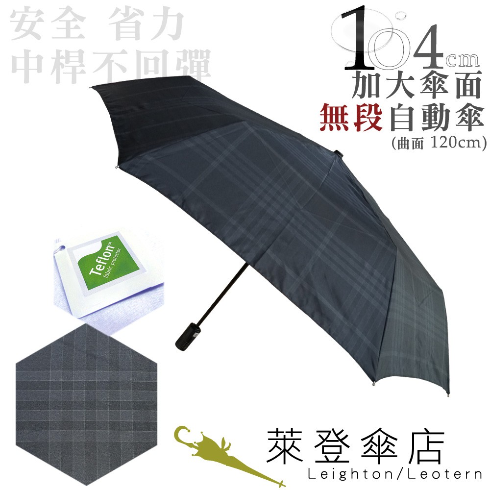 【萊登傘】雨傘 先染色紗格紋布 不回彈 104cm加大自動傘 易甩乾 防風抗斷 深灰大格