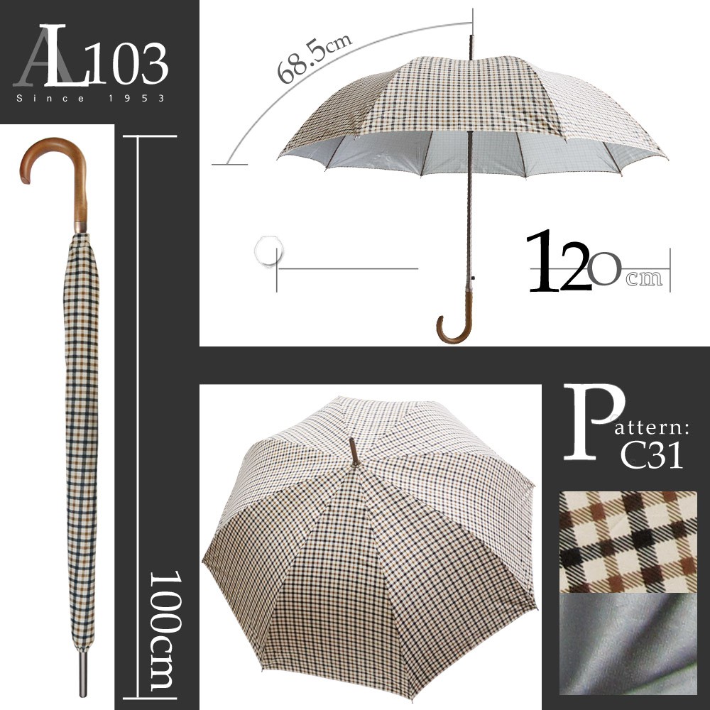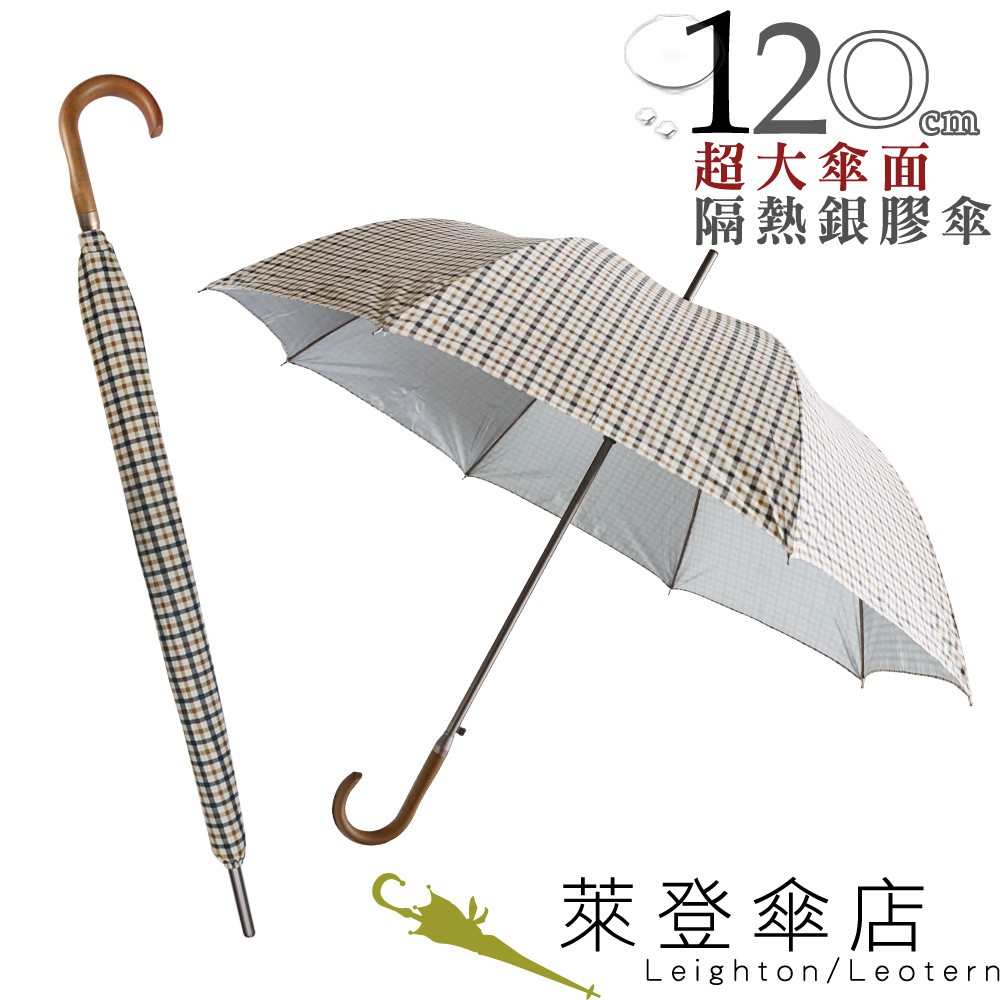 【萊登傘】雨傘 印花銀膠 120cm超大直傘 可遮三人 抗UV防曬 防風抗斷 米白格紋