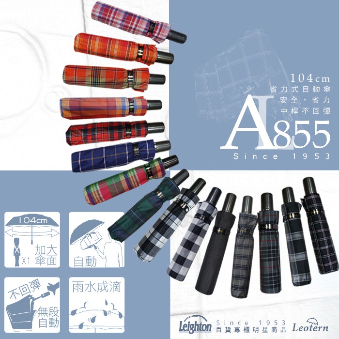 【萊登傘】雨傘 先染色紗格紋布 不回彈 104cm加大自動傘 易甩乾 防風抗斷 亮橘格紋