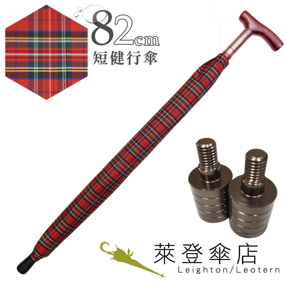 【萊登傘】雨傘 縮短版 調高健行傘 輔助 格紋布 長輩禮物 紅綠細格