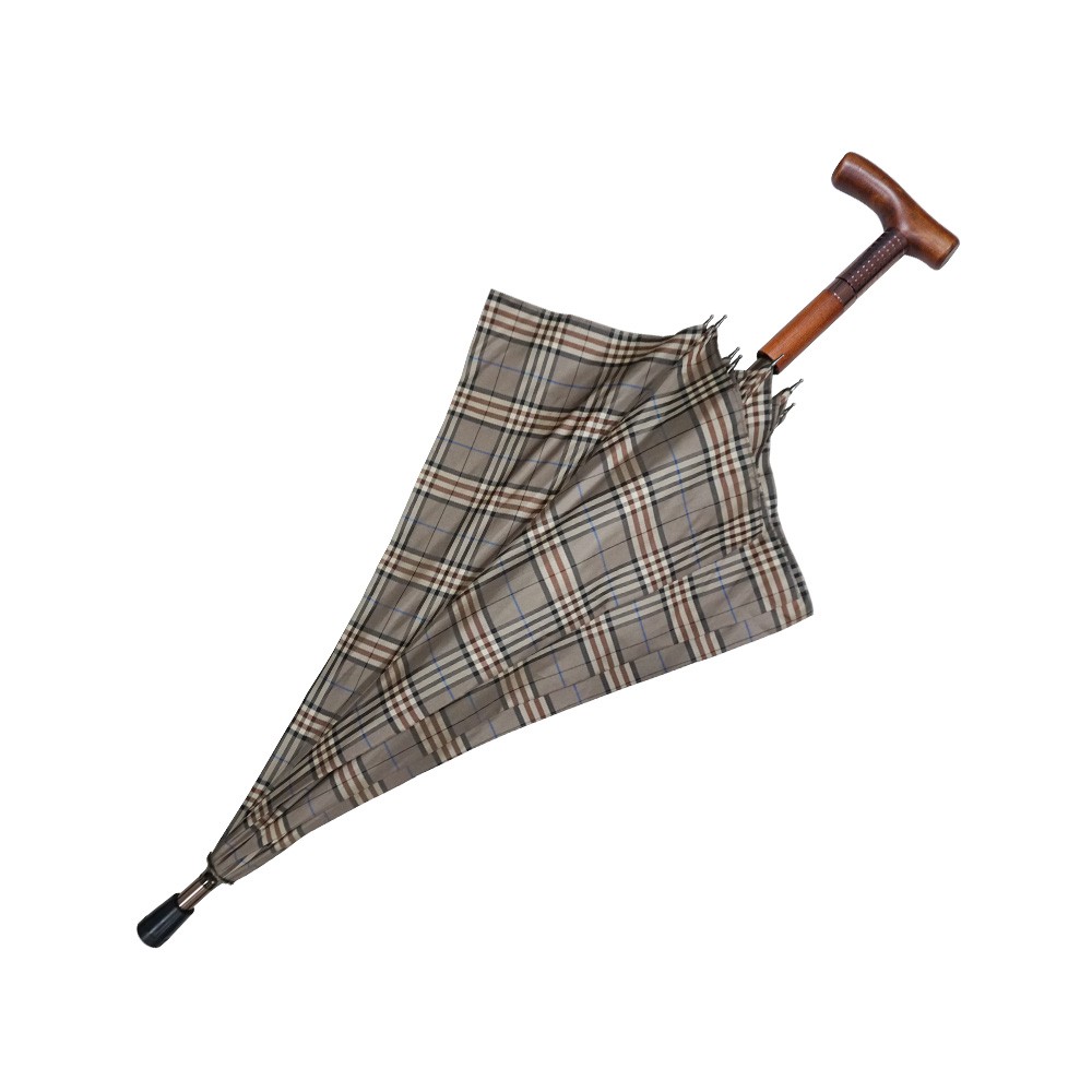 【萊登傘】雨傘 調高健行傘 一般高度 輔助 格紋布 長輩禮物 米褐格紋