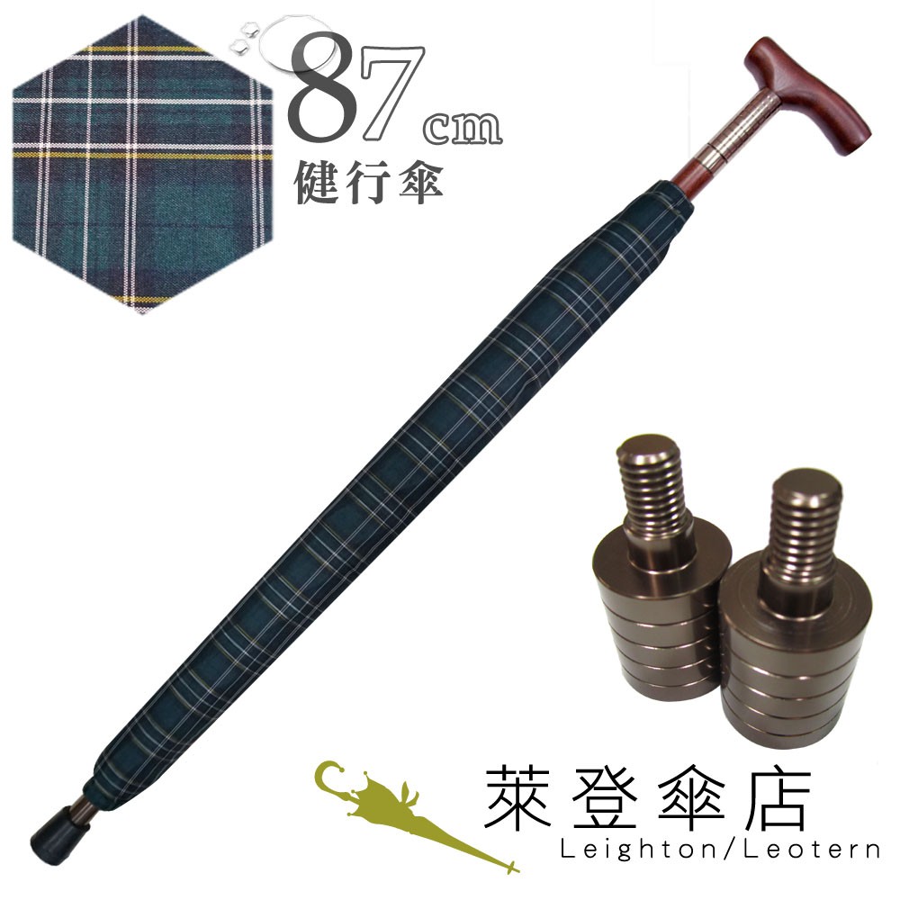 【萊登傘】雨傘 調高健行傘 一般高度 輔助 格紋布 長輩禮物 墨綠白格