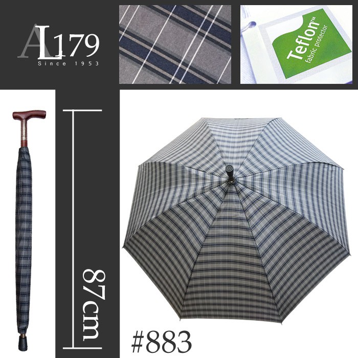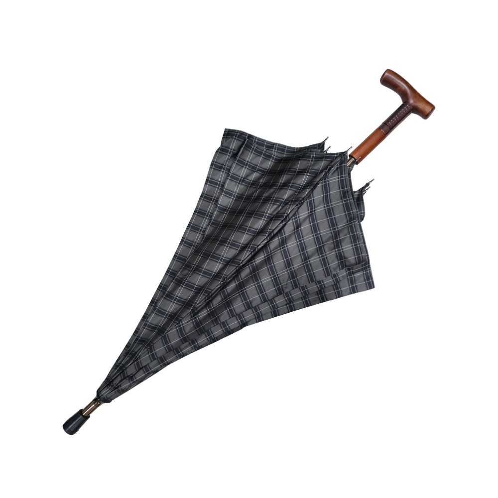 【萊登傘】雨傘 調高健行傘 一般高度 輔助 格紋布 長輩禮物 灰黑格紋