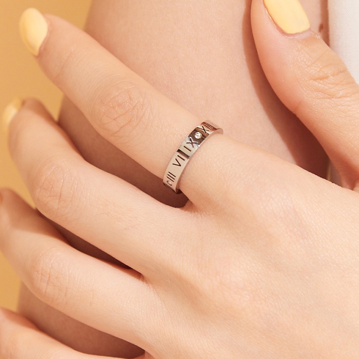 vacanza|純鋼|單鑽羅馬數字‧純鋼戒指
