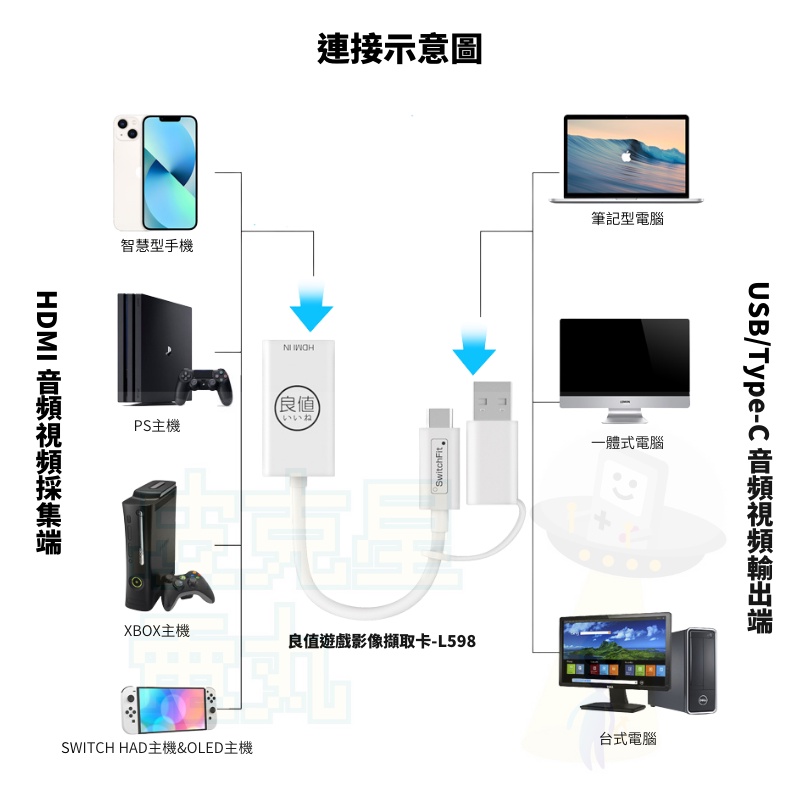 【皮克星】全新現貨 PS5 Switch 良值遊戲影像擷取卡-L598 直播串流 投影筆電直播影片擷取 OBS