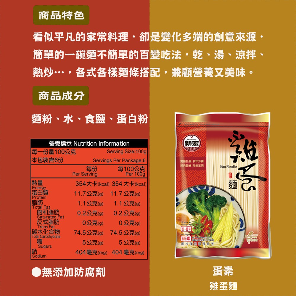 【新宏】雞蛋麵/油麵家常麵條-600公克 <6人份> /(店到店限重5公斤)