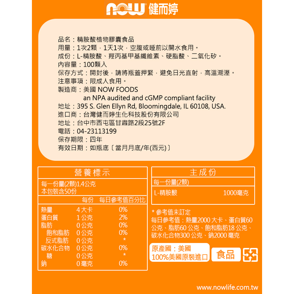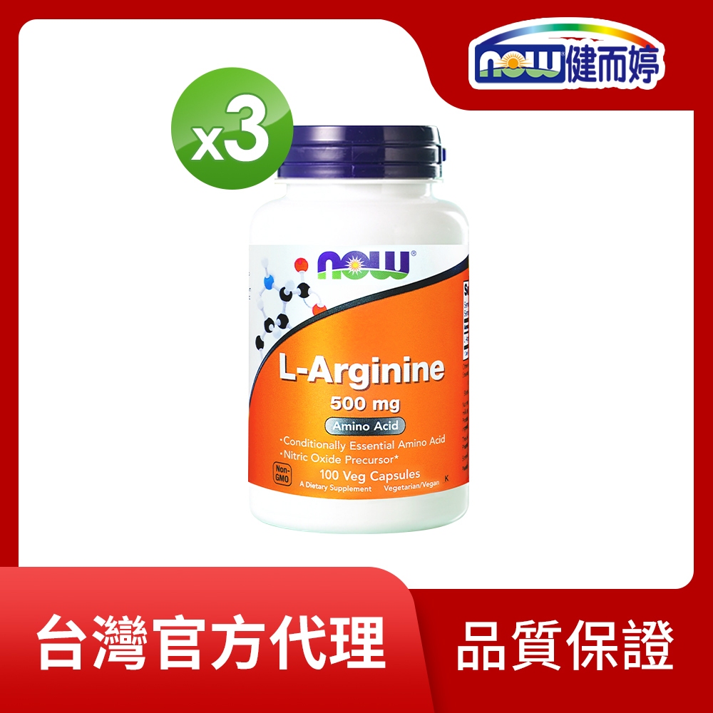 NOW健而婷 一氧化氮-精胺酸膠囊食品(100顆/瓶)三瓶組 台灣官方代理