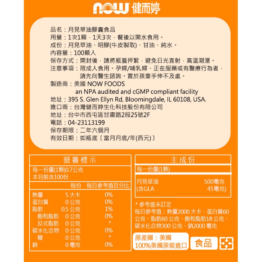 NOW健而婷 月見草油(100顆/瓶)
