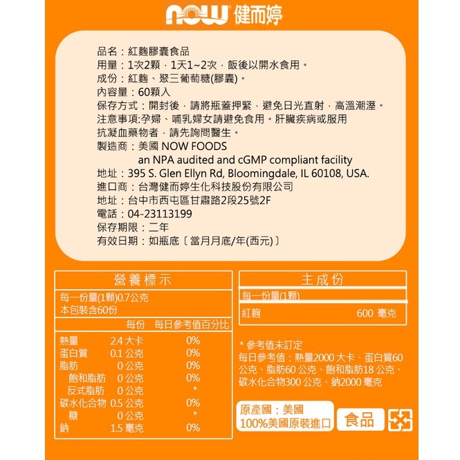 NOW健而婷 紅麴(60顆/瓶)