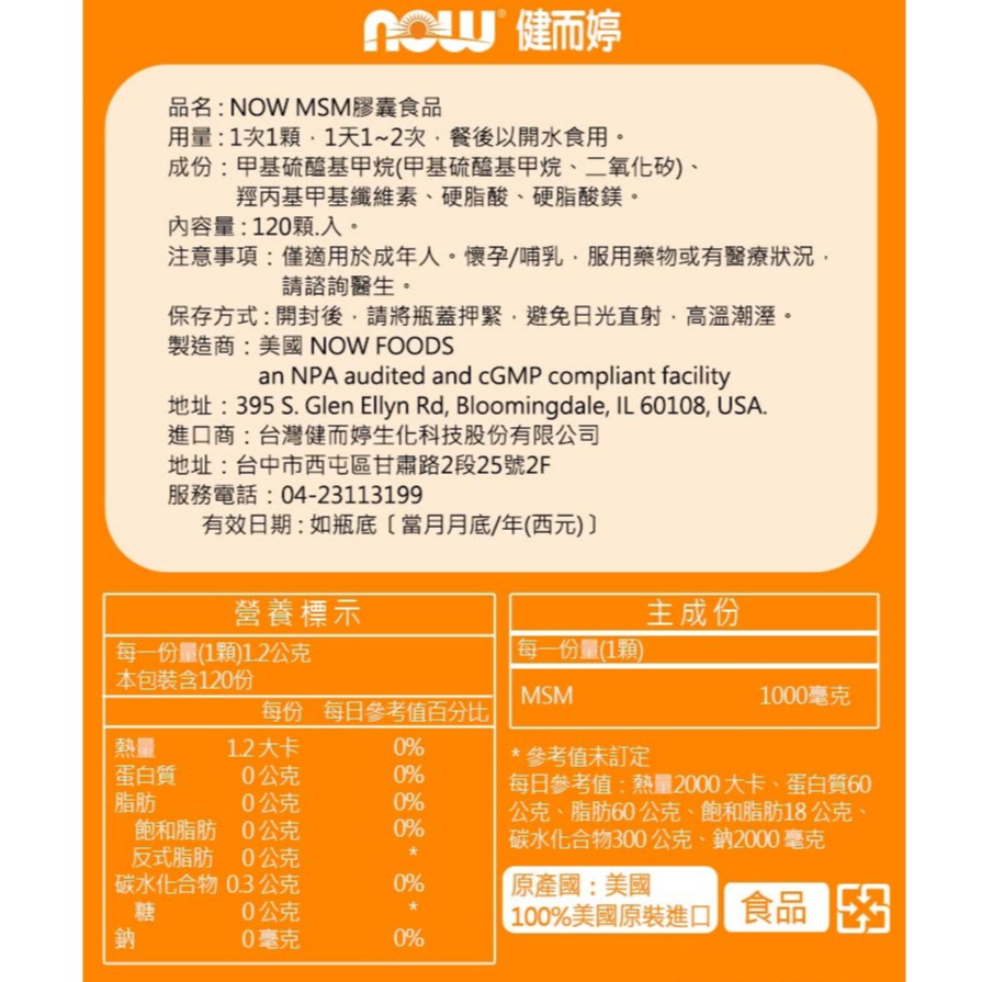 NOW健而婷 MSM 1000(120顆/瓶) 台灣官方代理