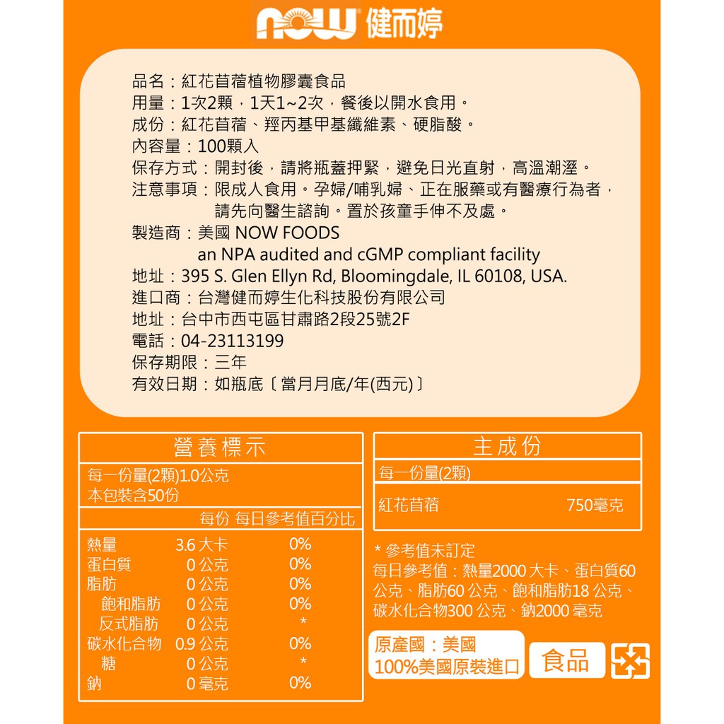 NOW健而婷 紅花苜蓿-頂級植物異黃酮(100顆/瓶)