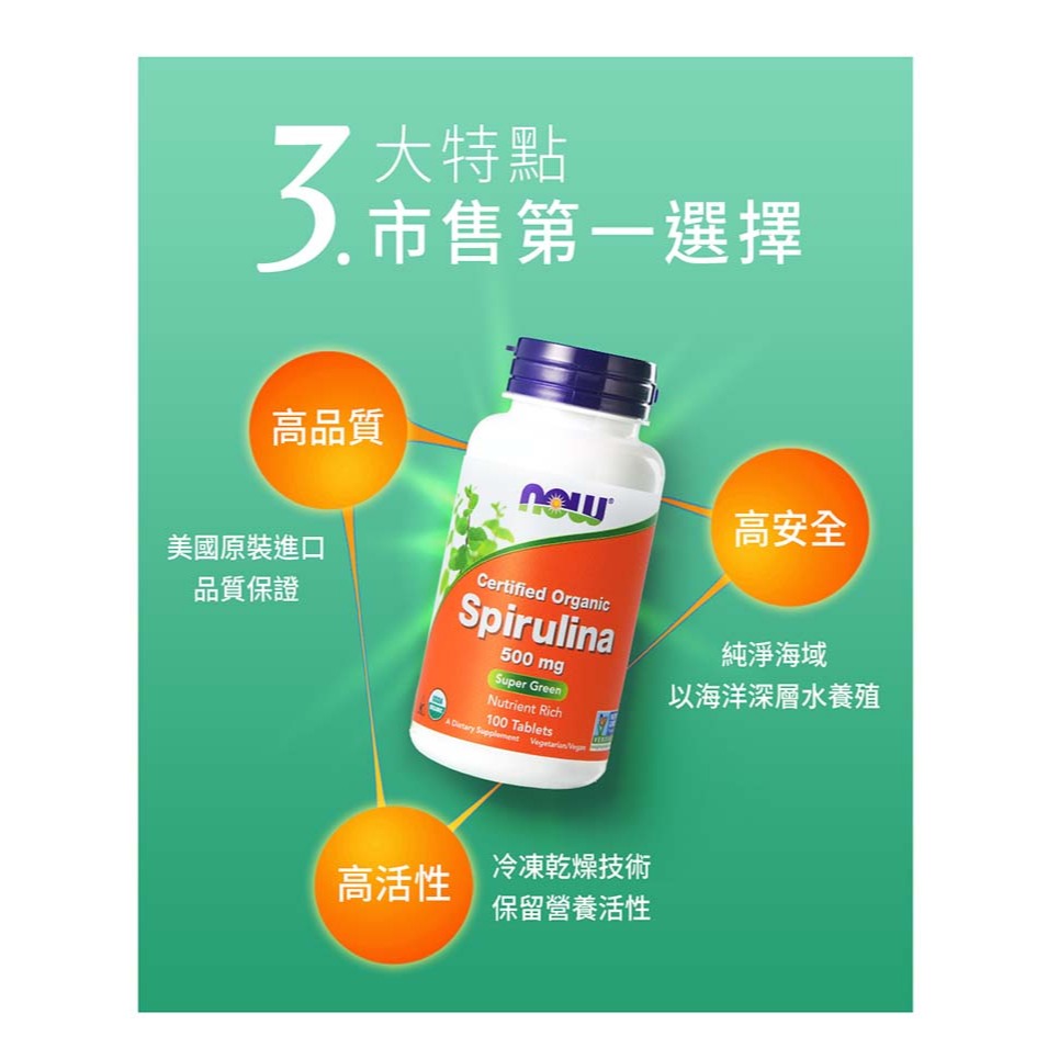 NOW健而婷 螺旋藻(100顆/瓶)三瓶組 台灣官方代理