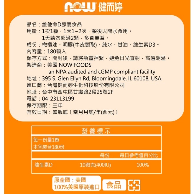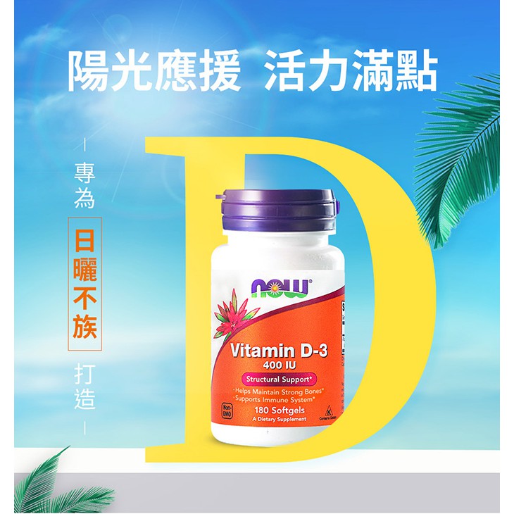 NOW健而婷 維他命D (180顆/瓶)三瓶組