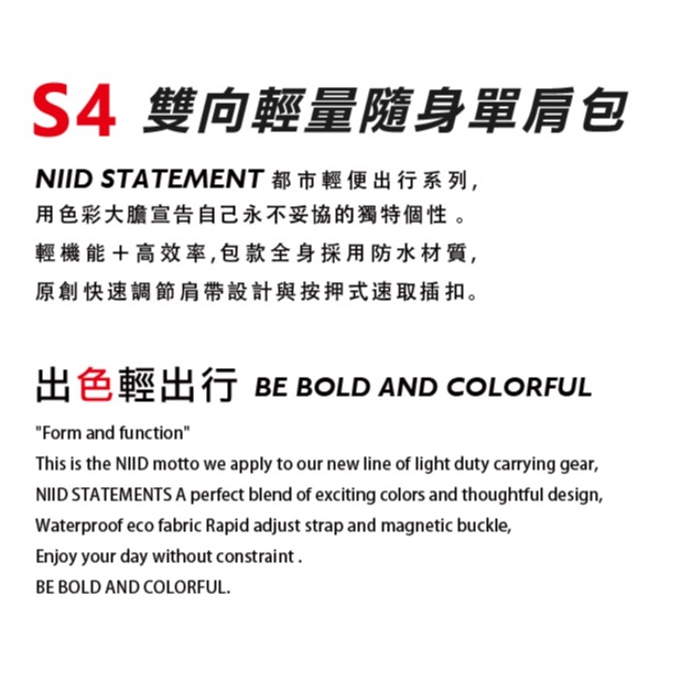 NIID x Statement 玩色宣言 S4 雙向輕量隨身單肩包 - 三色任選