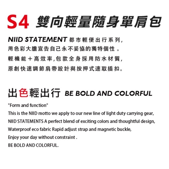 NIID x Statement 玩色宣言 S4 雙向輕量隨身單肩包 - 灰色