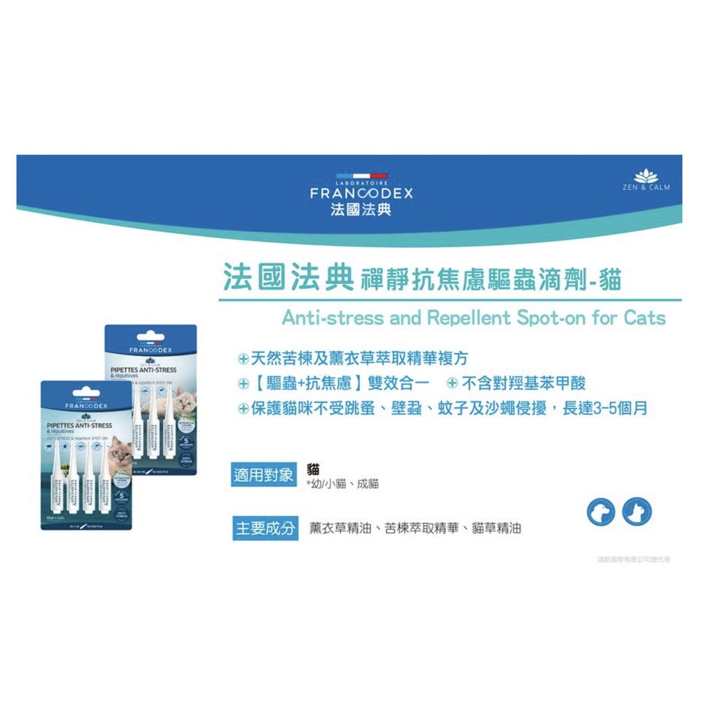 Francodex 法國法典 禪靜系列 貓用 抗焦慮蟲滴劑
