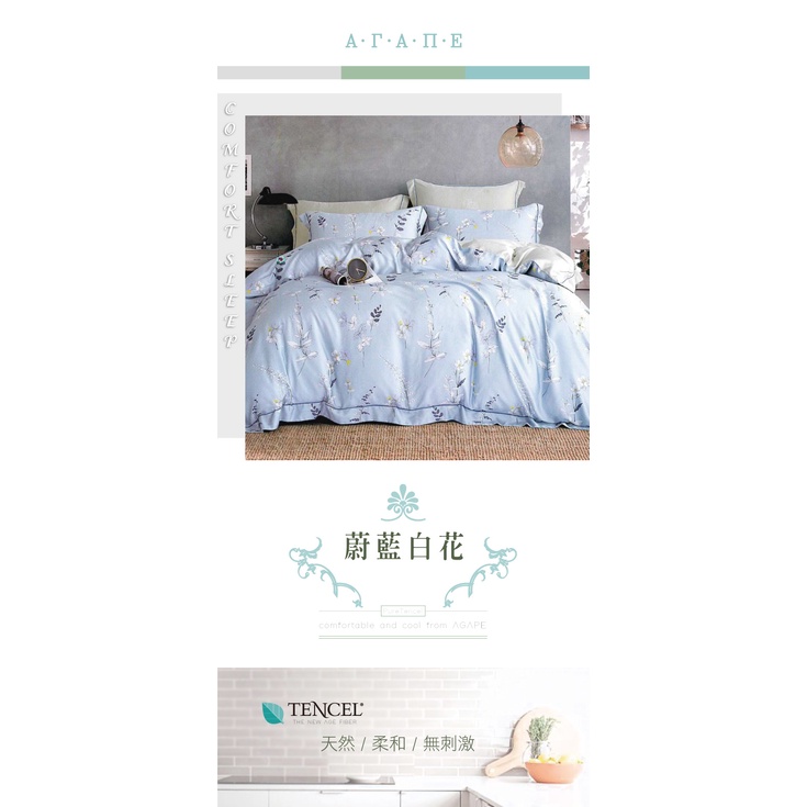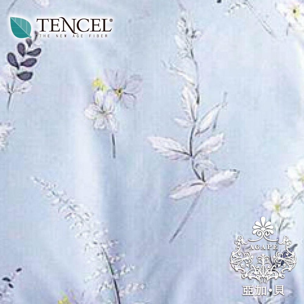 AGAPE雅家倍【蔚藍白花】100%純天絲 雙人/加大/特大 鋪棉兩用被薄床包四件組/鋪棉兩用被床罩八件組