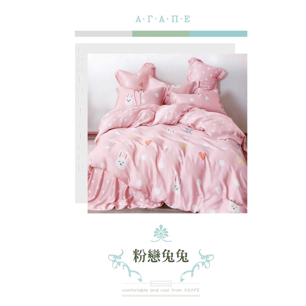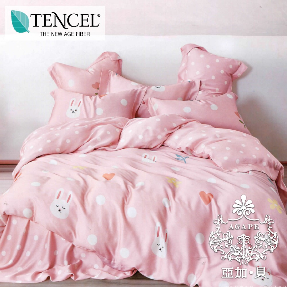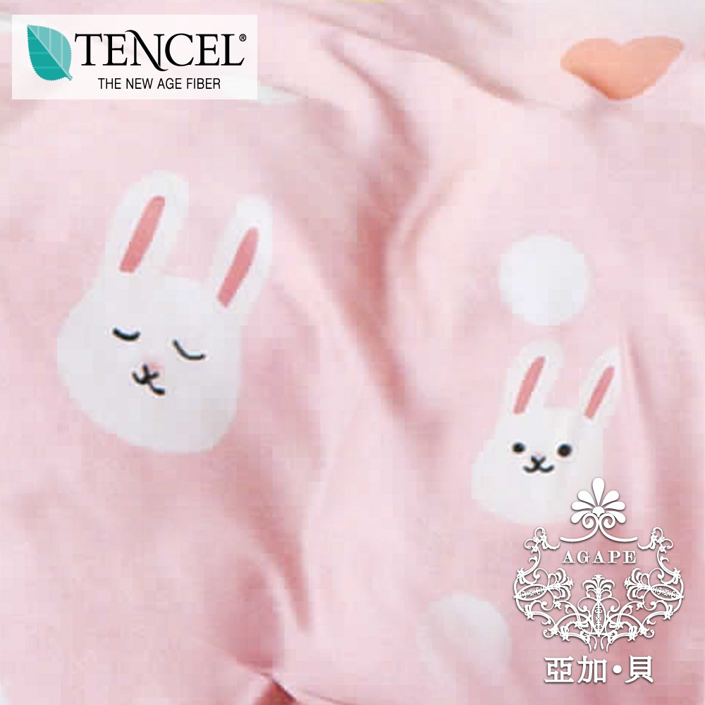 AGAPE雅家倍【粉戀兔兔】100%純天絲 雙人 /加大/特大 鋪棉兩用被薄床包四件組/單人三件組(床包加高35公分)