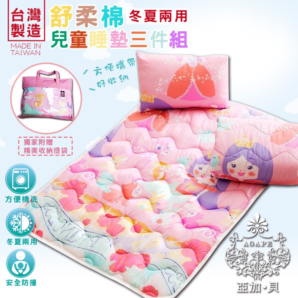 AGAPE雅家倍《奇幻公主》MIT台灣製舒柔棉 兒童睡墊三件組(贈收納提袋)/現貨