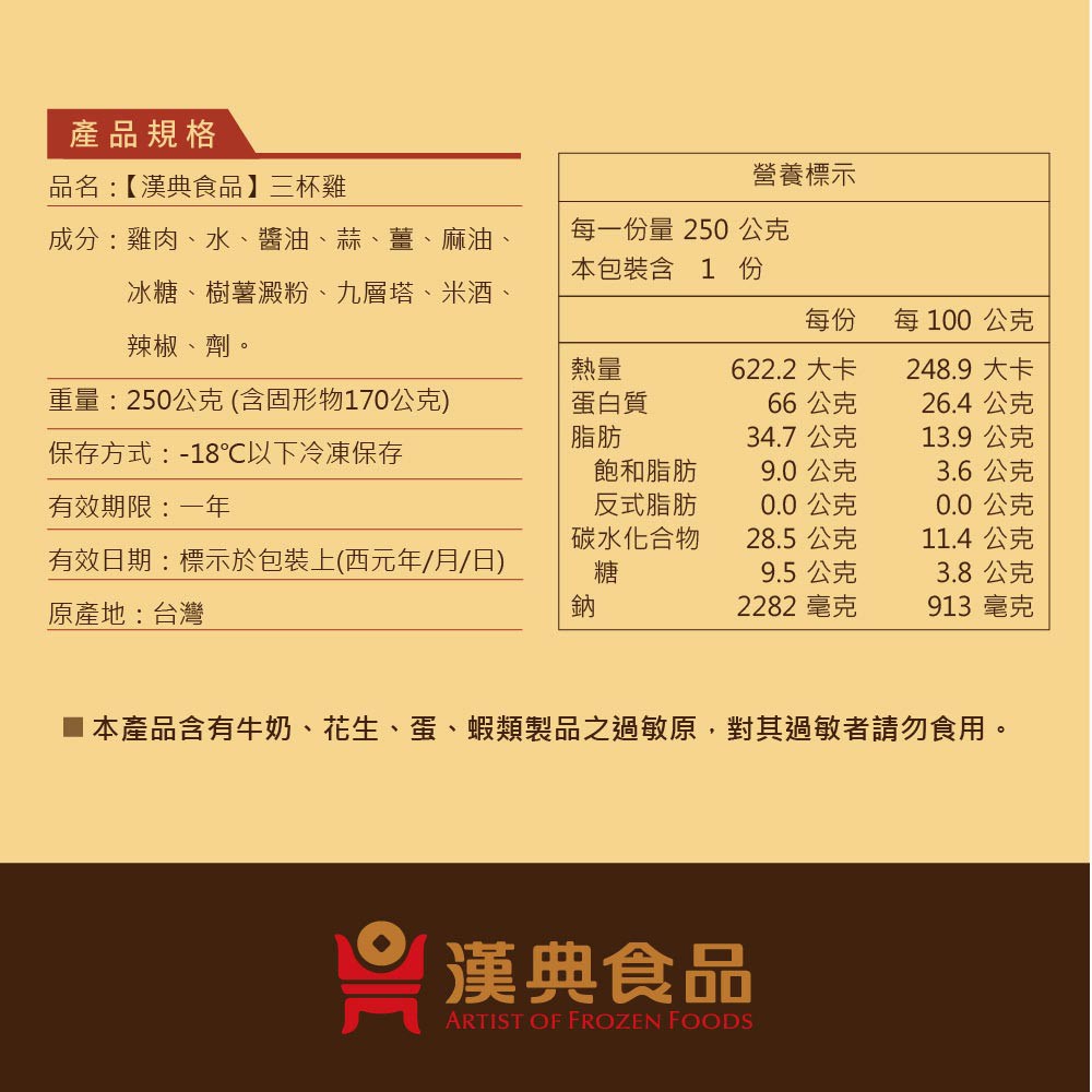 【漢典食品】三杯雞 嚴選牧場小雞腿丁,肉質嫩而不爛,滿滿的雞腿肉!主廚秘方黃金三杯比例,醬汁香濃,下飯的好滋味