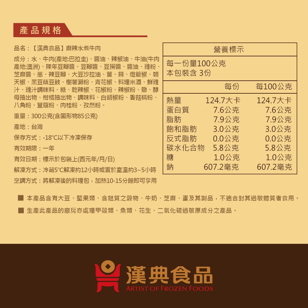 【漢典食品】麻辣水煮牛肉 300g|道地巴蜀川香風味 麻辣帶勁|鹹香下飯 下酒菜 家庭料理 年節佳餚