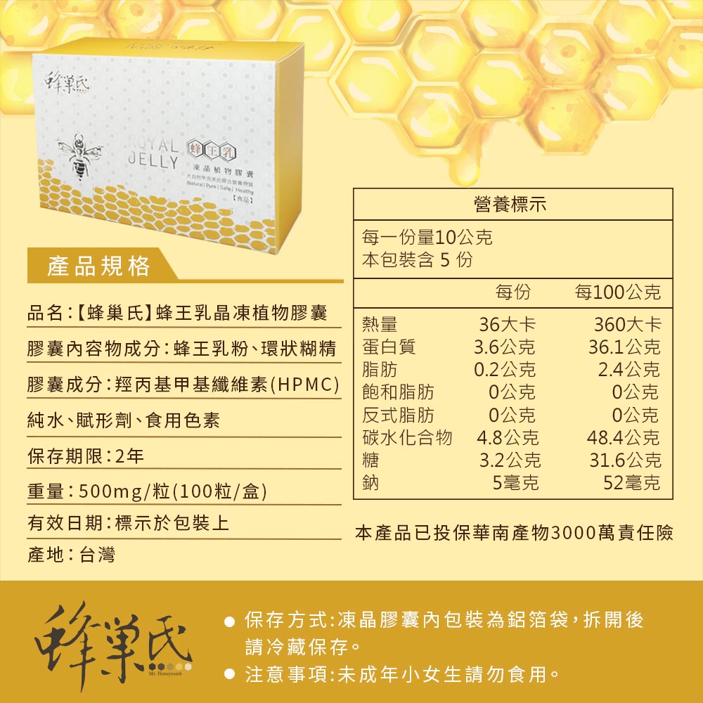 【蜂巢氏】蜂王乳凍晶植物膠囊100粒