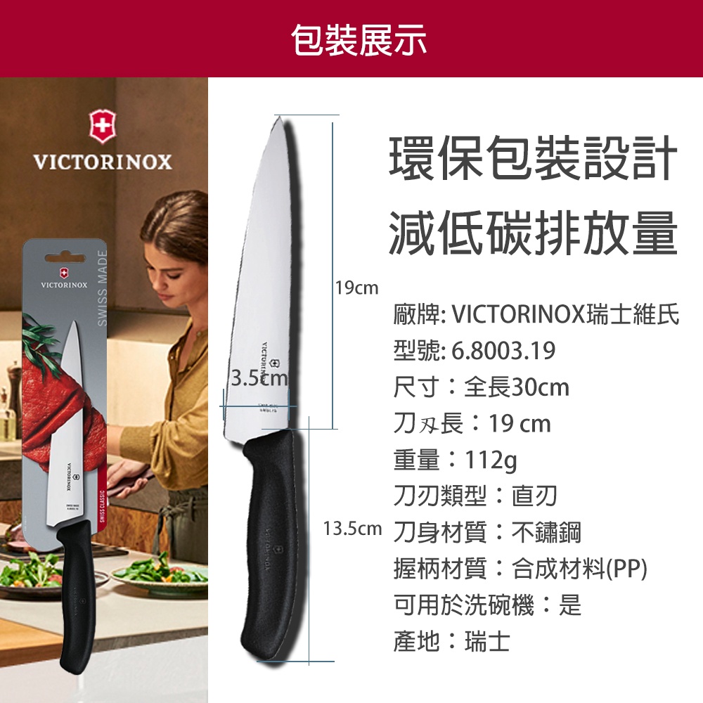 VICTORINOX 瑞士維氏 切肉刀 19cm 直刃 Swiss Classi 不鏽鋼刀 主廚刀