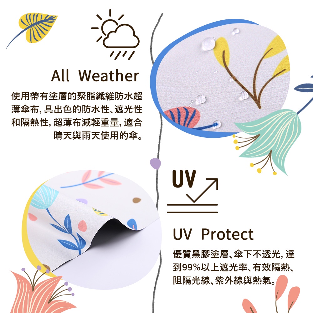 【rento】MINI不鏽鋼黑膠晴雨傘-草葉集 _藍