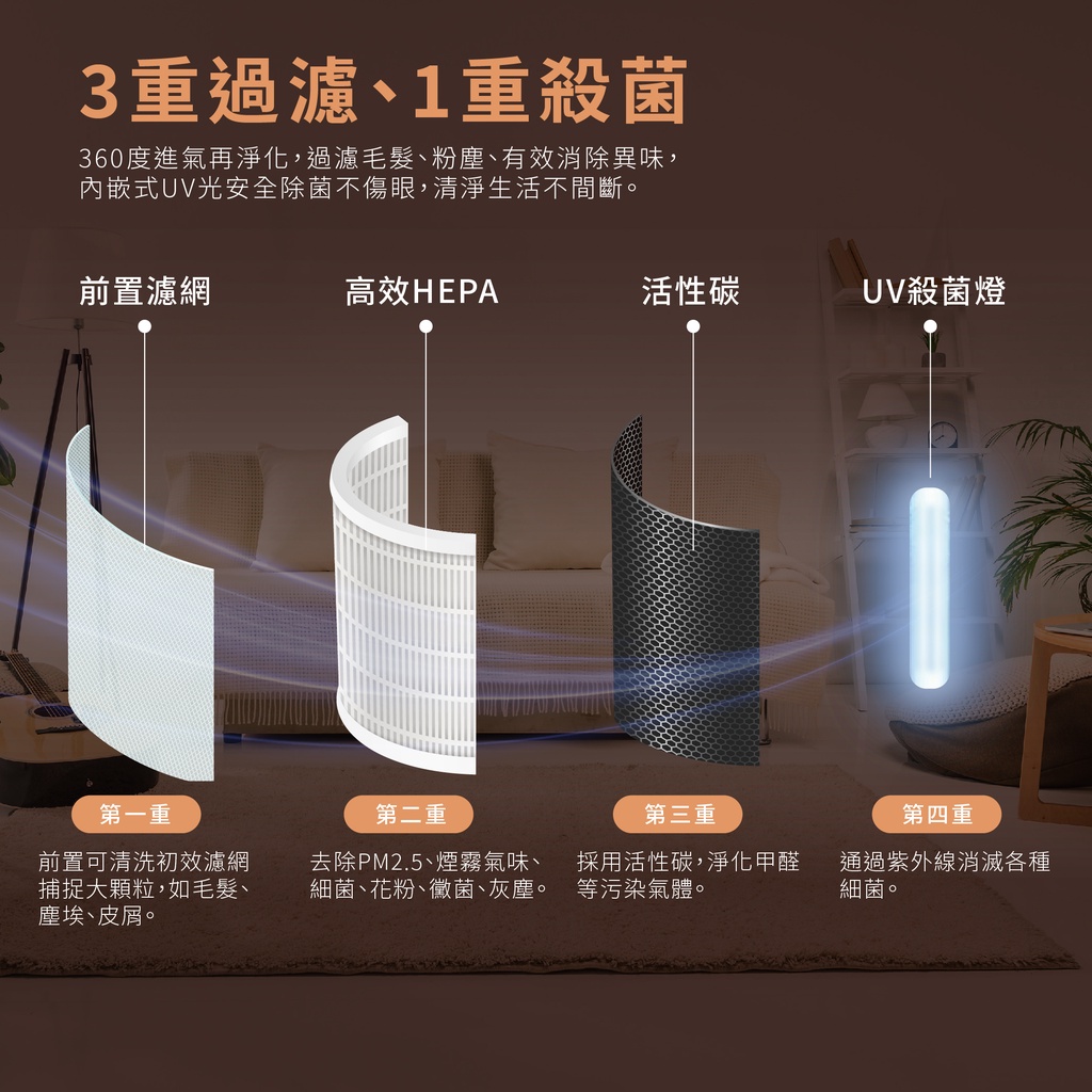 【PINOH品諾】一級能效 空氣清淨機 6坪 負離子/UV殺菌 HEPA過濾 PM2.5除臭 智慧偵測 現貨 (DA-A