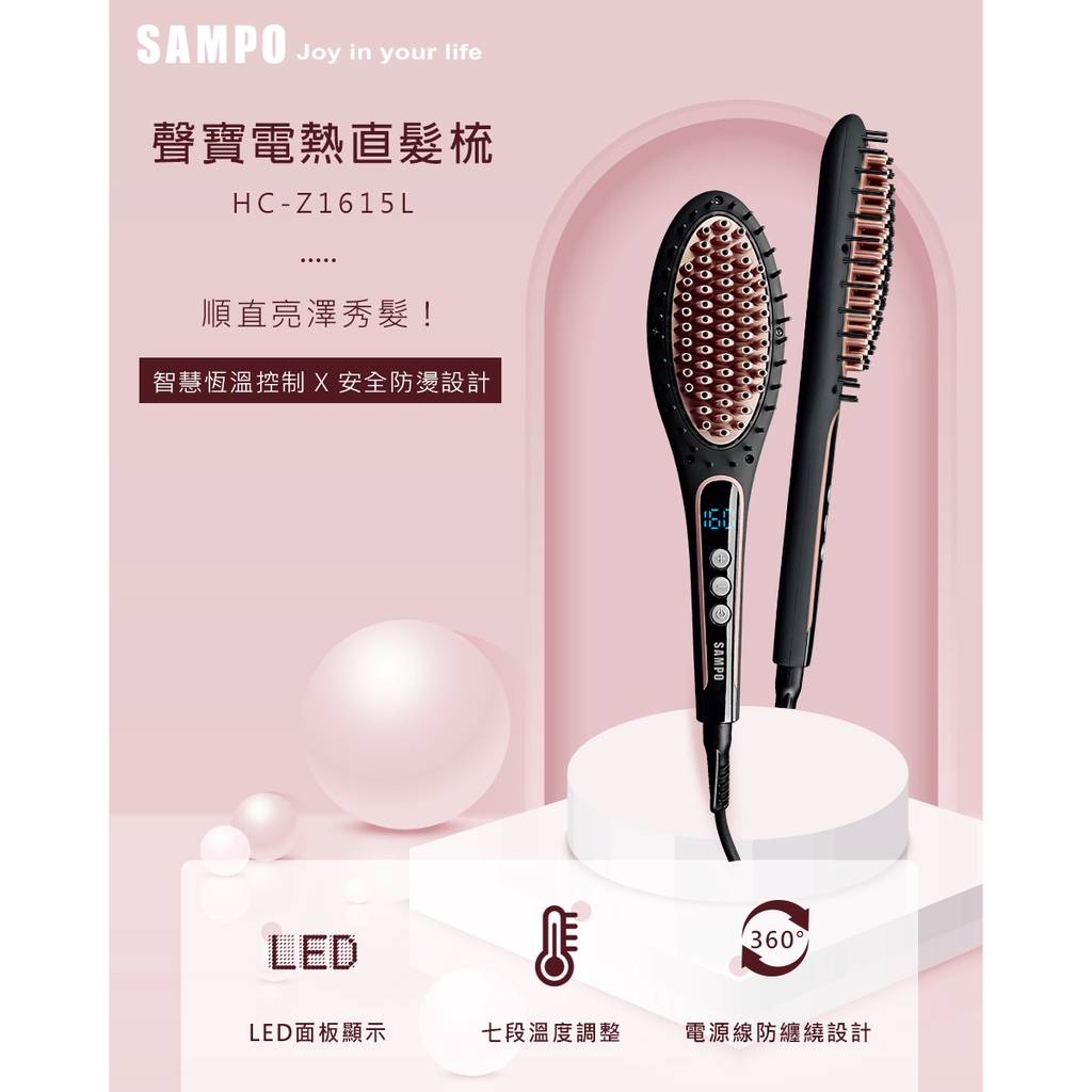 SAMPO聲寶 電熱直髮梳 HC-Z1615L(福利品) 夾直 直髮 捲髮 內灣 不傷髮質 離子夾 電棒 原廠保固 現貨