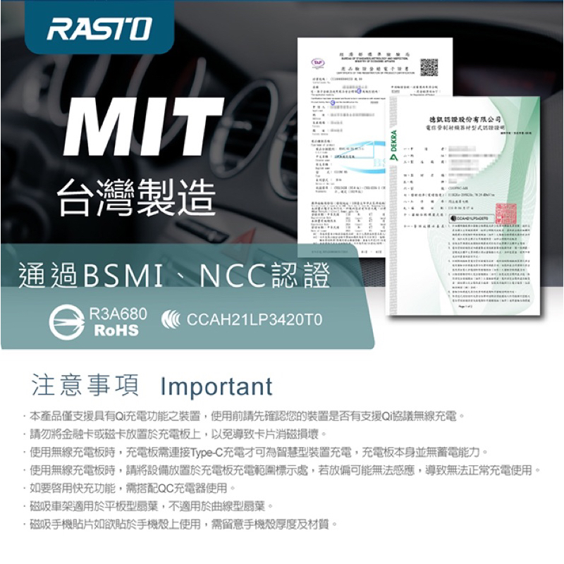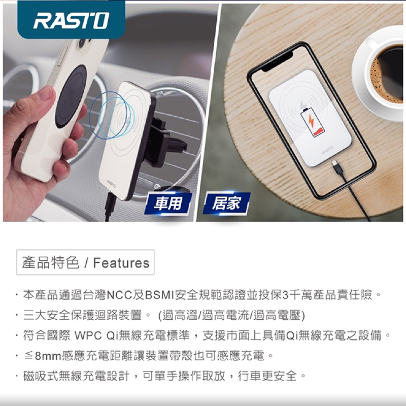 RASTO RB17 15W 可分離磁吸快充居家車用二合一無線充電板 車充 無線充電 磁吸式 快充板
