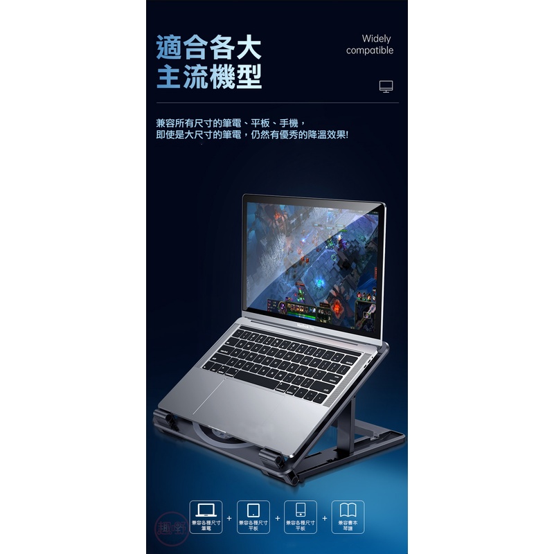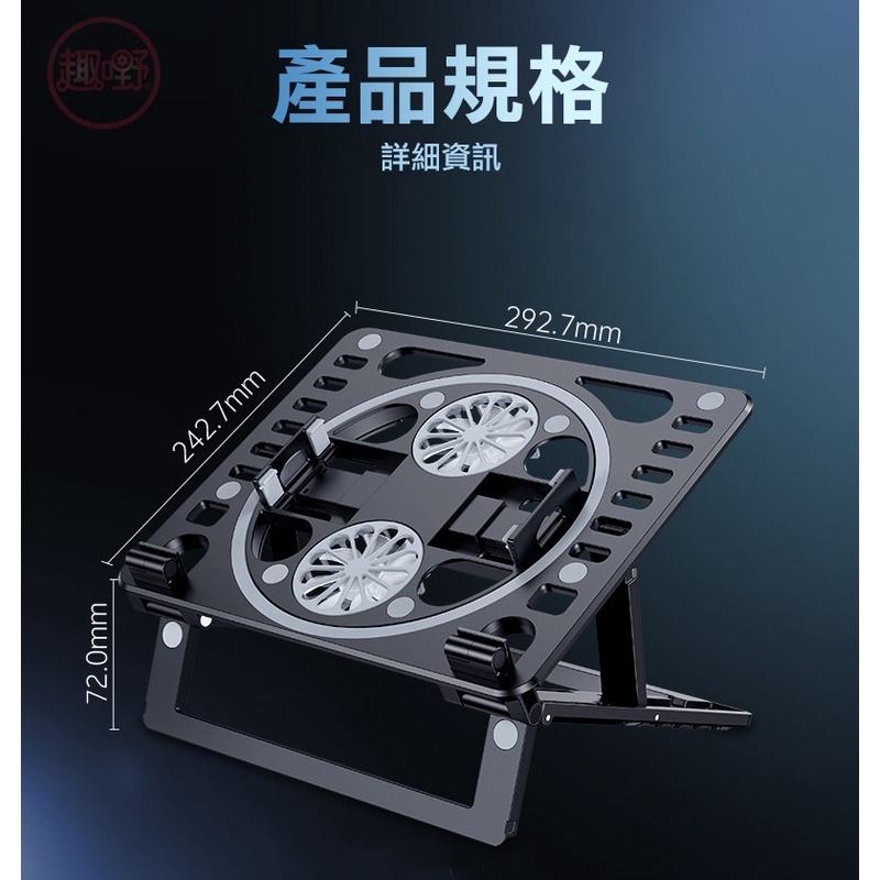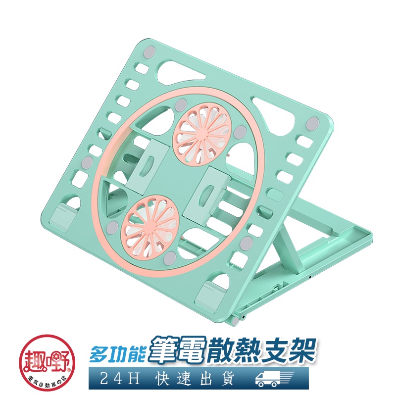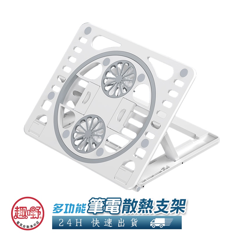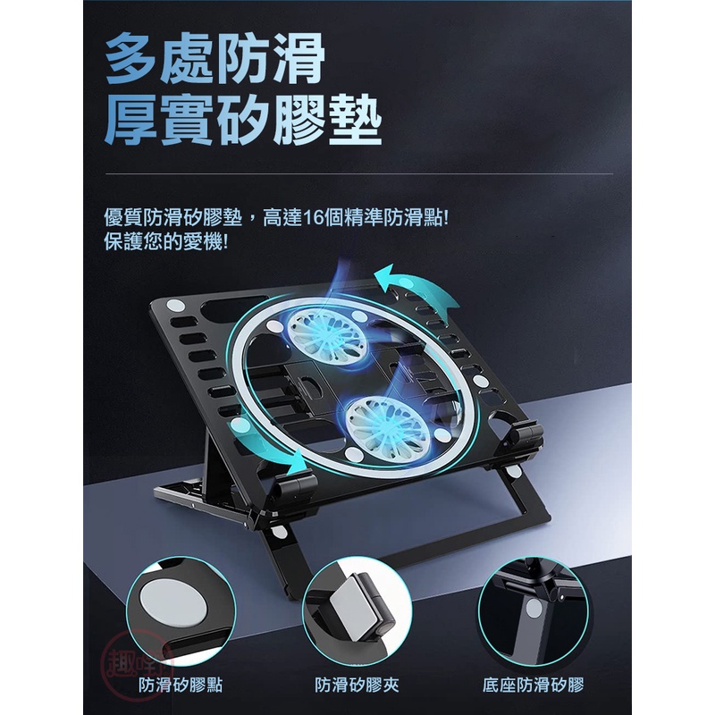 [趣嘢]多功能筆電散熱支架 6種角度可調 雙風扇降溫 手機 平板 看書 追劇 懶人支架