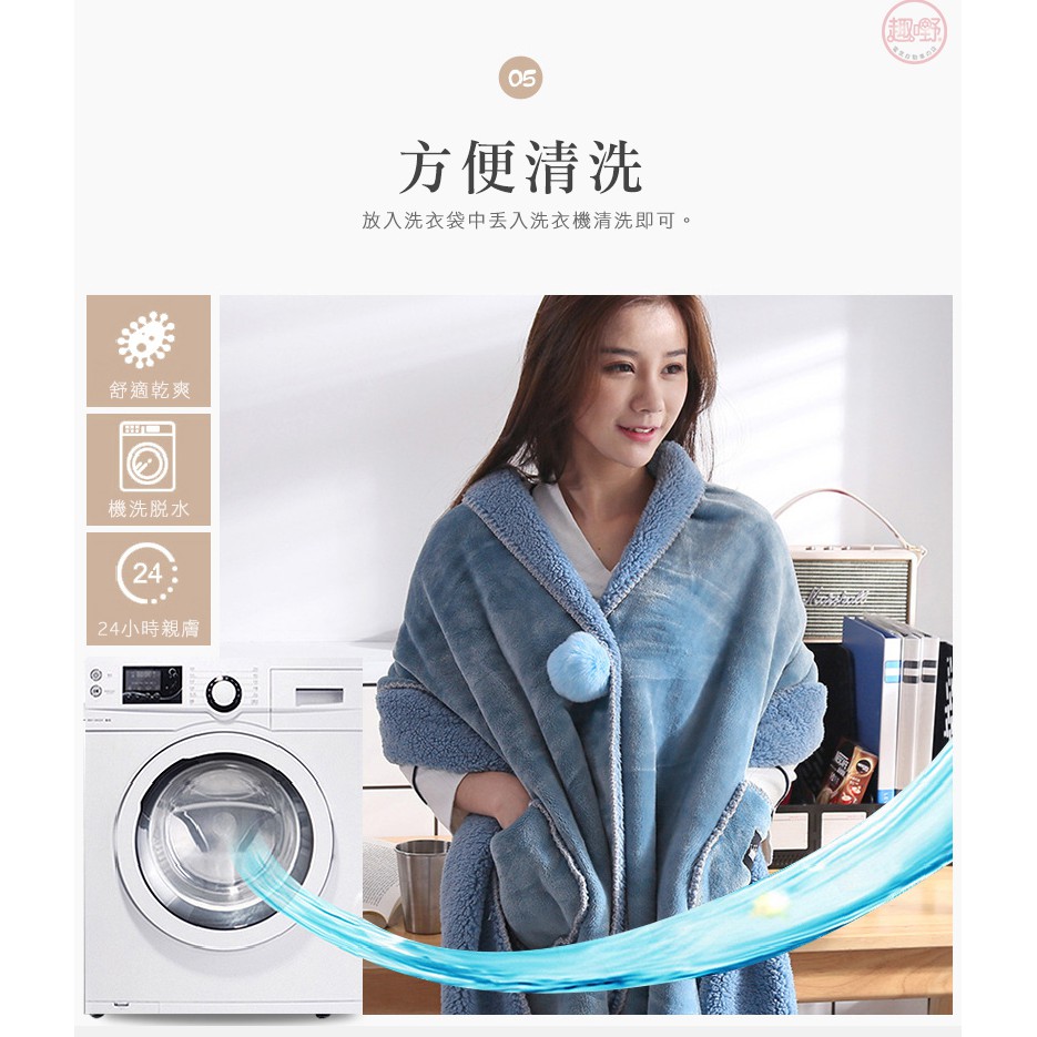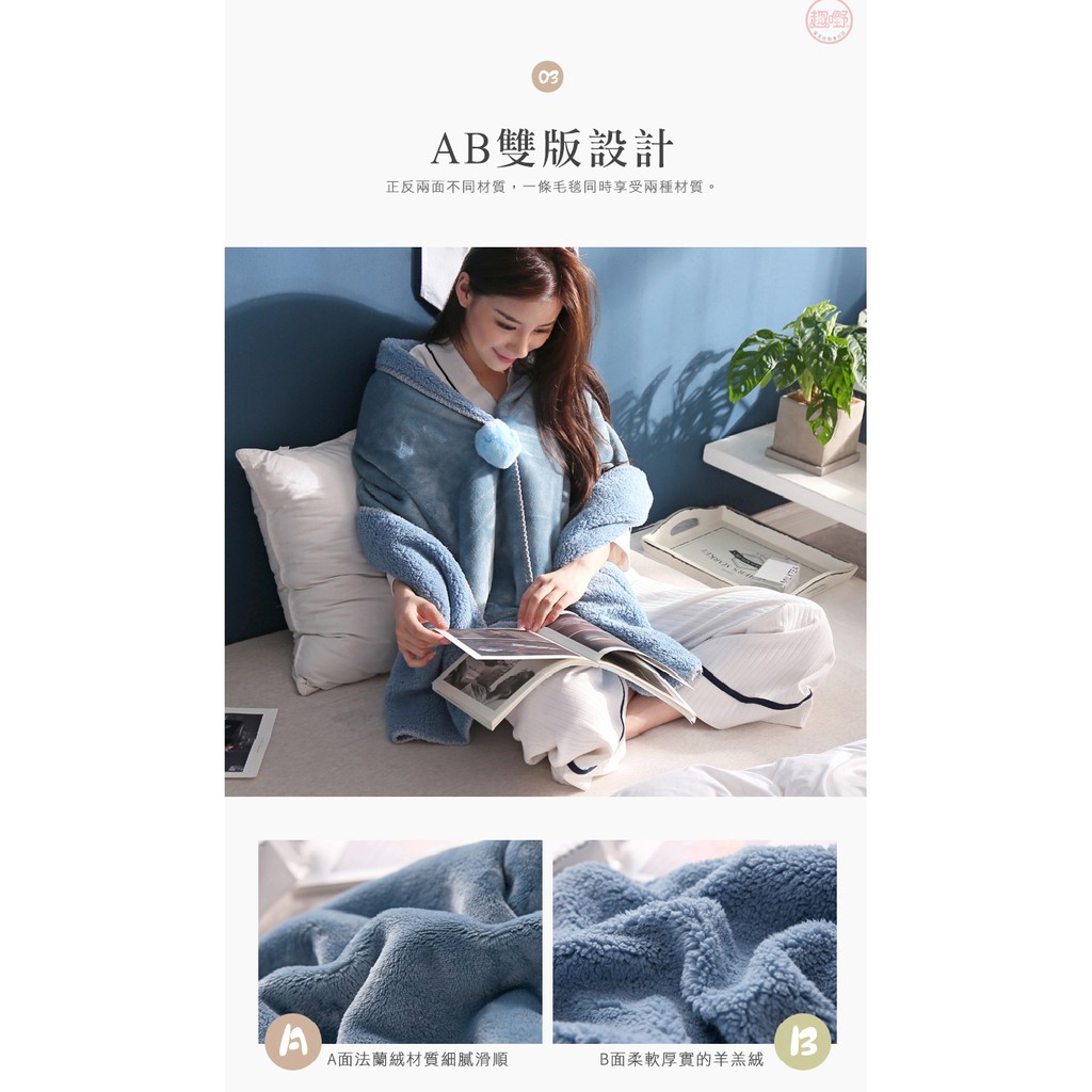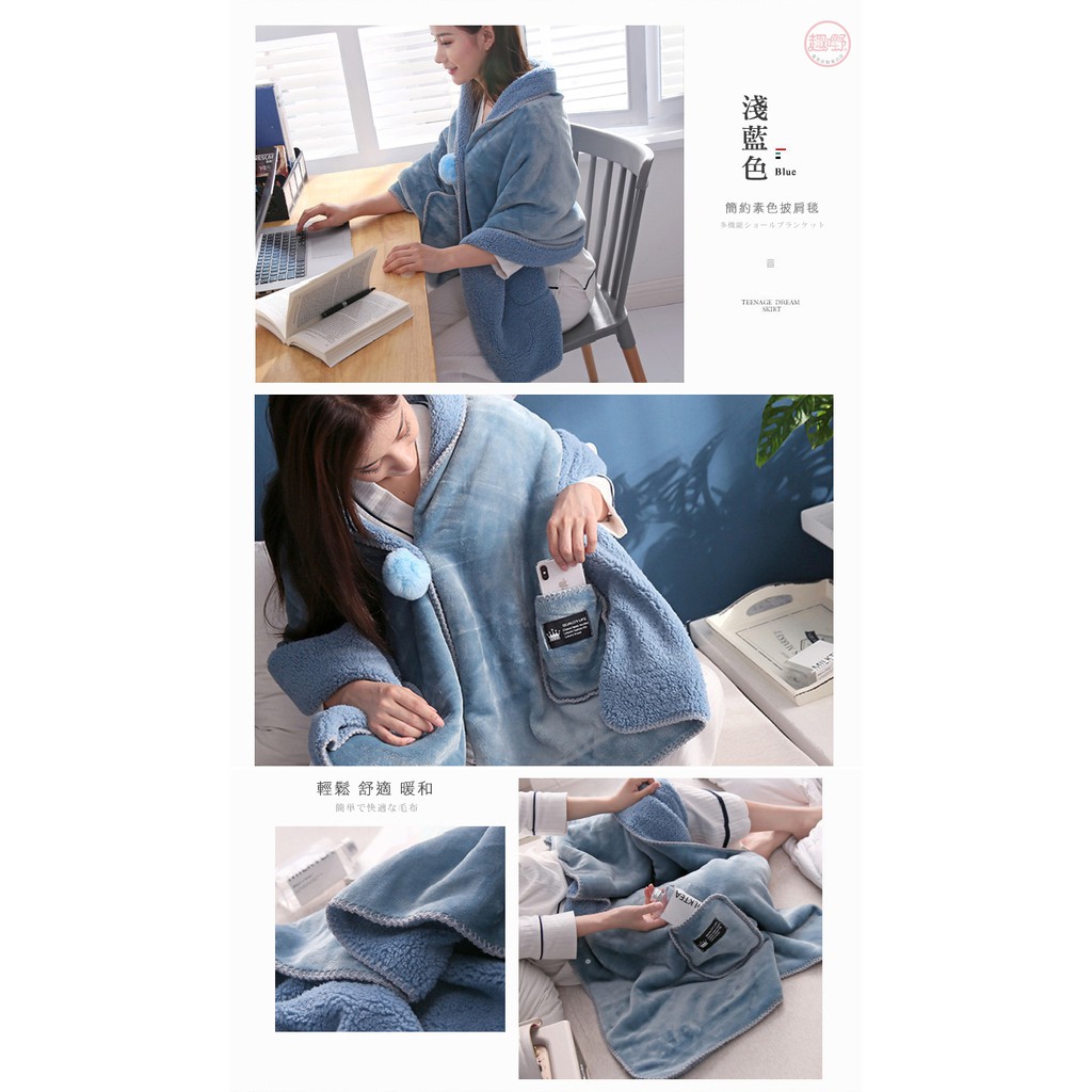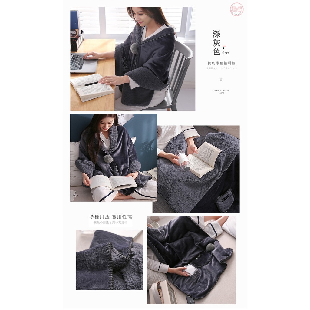 〔快速出貨〕披肩毯【雙層加厚 法蘭絨+羊羔絨】毛毯 懶人毯 披肩毯 午睡毯 保暖毯 可穿式毛毯[趣嘢]趣野