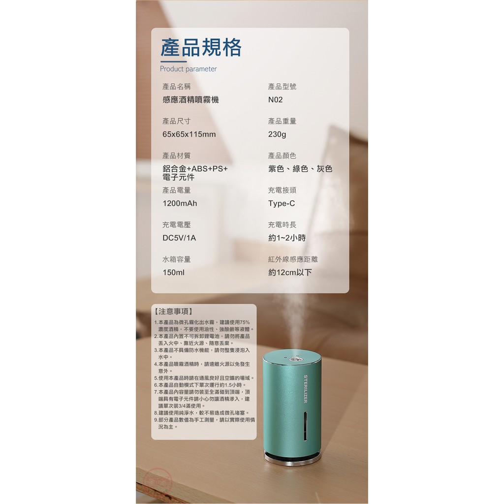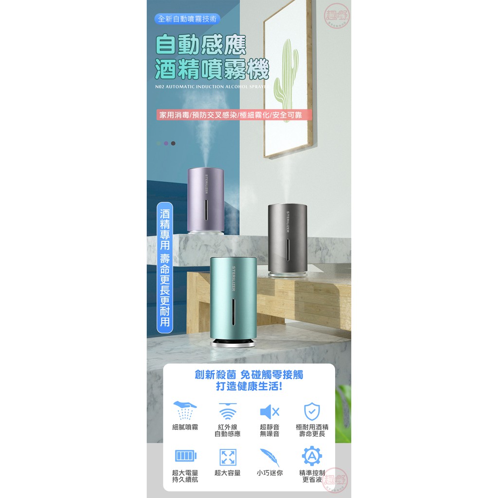 噴霧機 N02感應酒精噴霧機【可用75%酒精 消毒水】極細噴霧 加溼器 香芬機 電動噴霧機[趣嘢]趣野